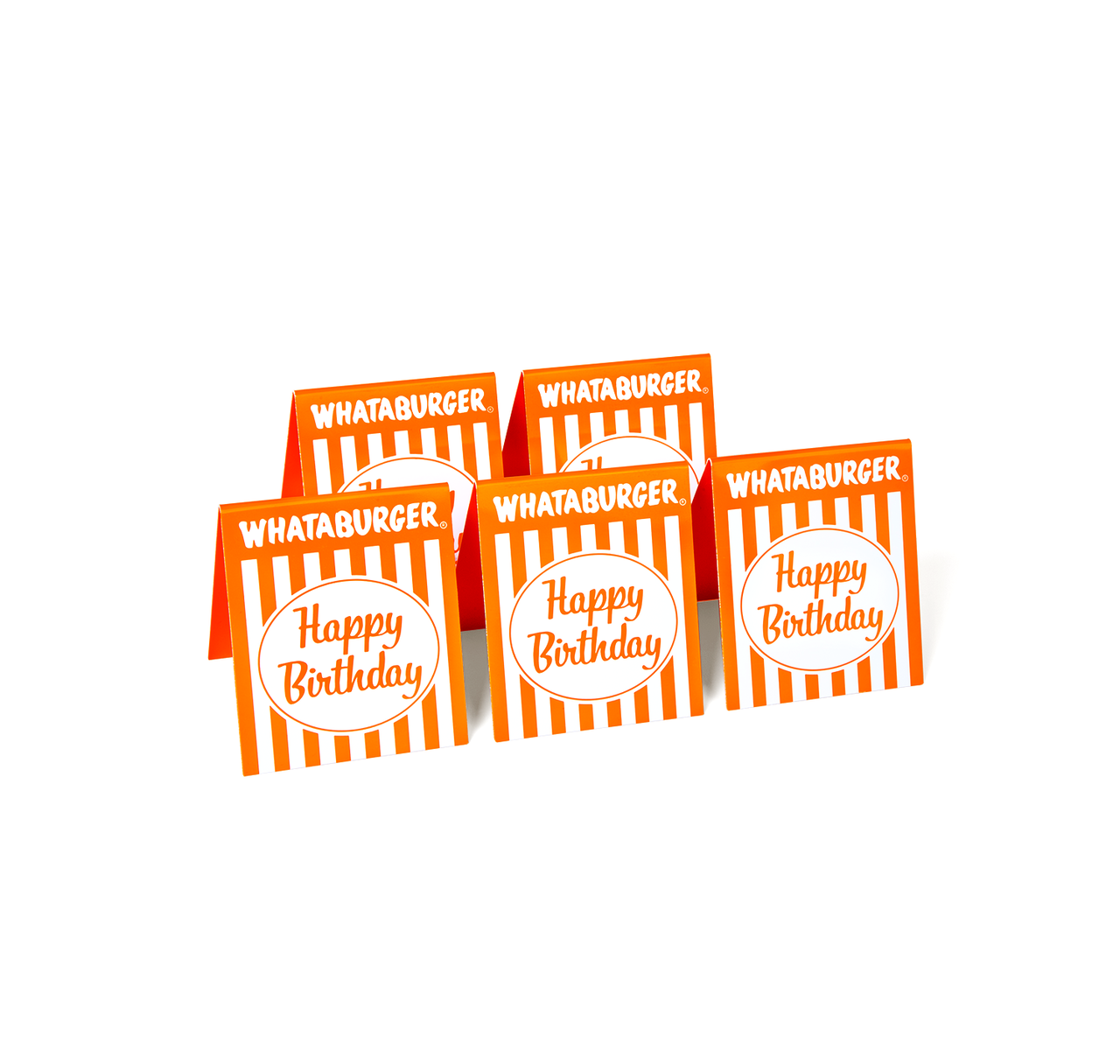 Say happy birthday the Whataburger way with our Happy Birthday Table Tent bundle. This is a birthday message that they’ll want to keep. The table tent is 3” tall x 3” wide. |