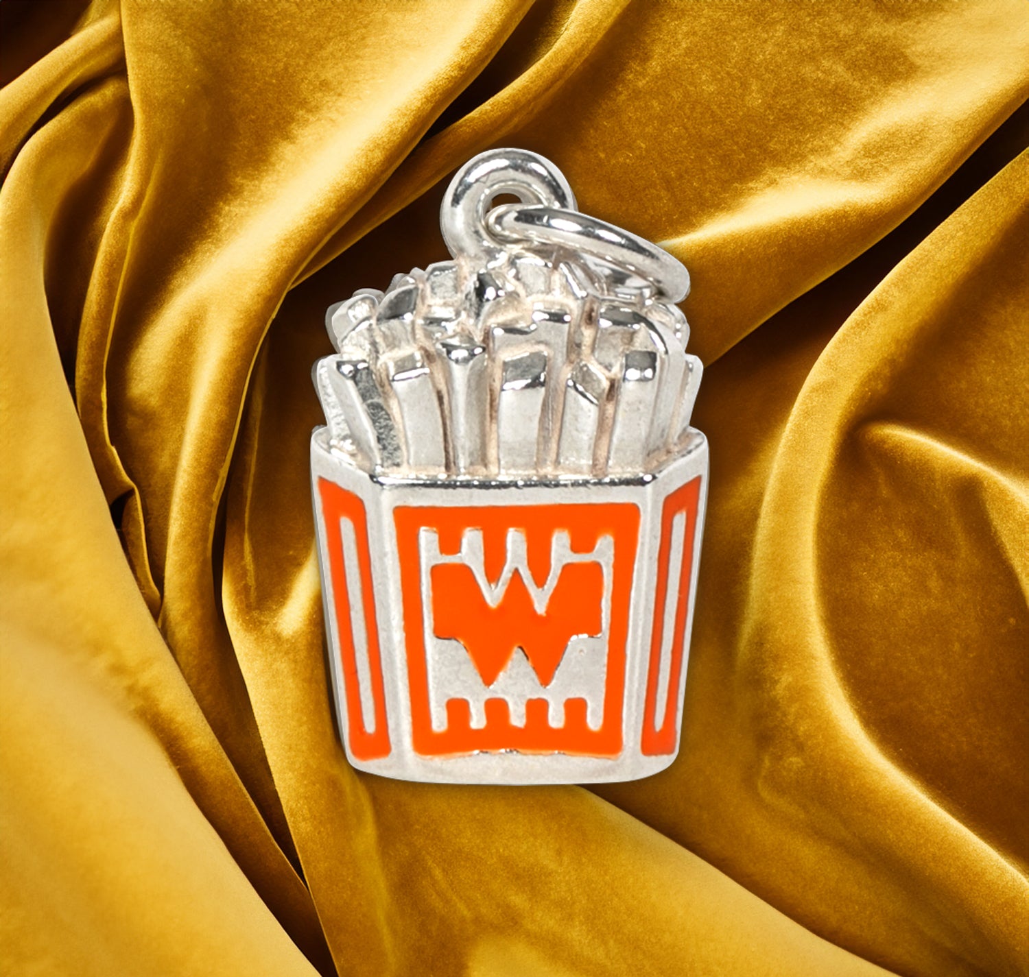 Charms represent good times, and Whataburger fries have been some of your best times. Wear this carefully crafted Fries Charm on a bracelet, charm necklace or chain – this sterling silver and orange enamel James Avery Fry Charm will make it feel like Fry Day every day.