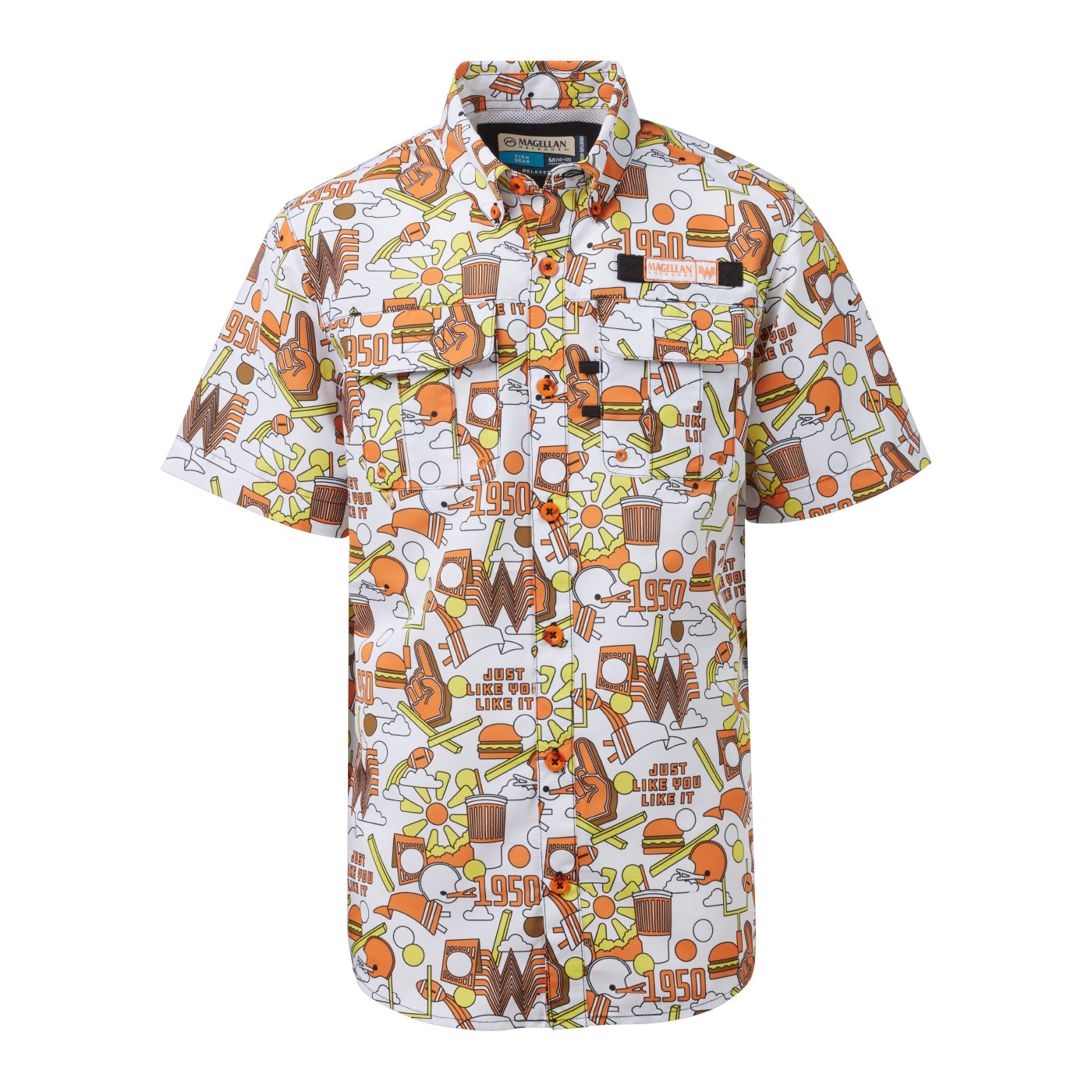 Bring your little one onto the water with the Magellan Outdoors x Whataburger Laguna Madre Happy Crazy Fun Short Sleeve Fishing Shirt. The moisture-wicking material cools by drawing sweat and moisture away from the skin, and the UPF-rated fabric helps protect from harmful UV rays.