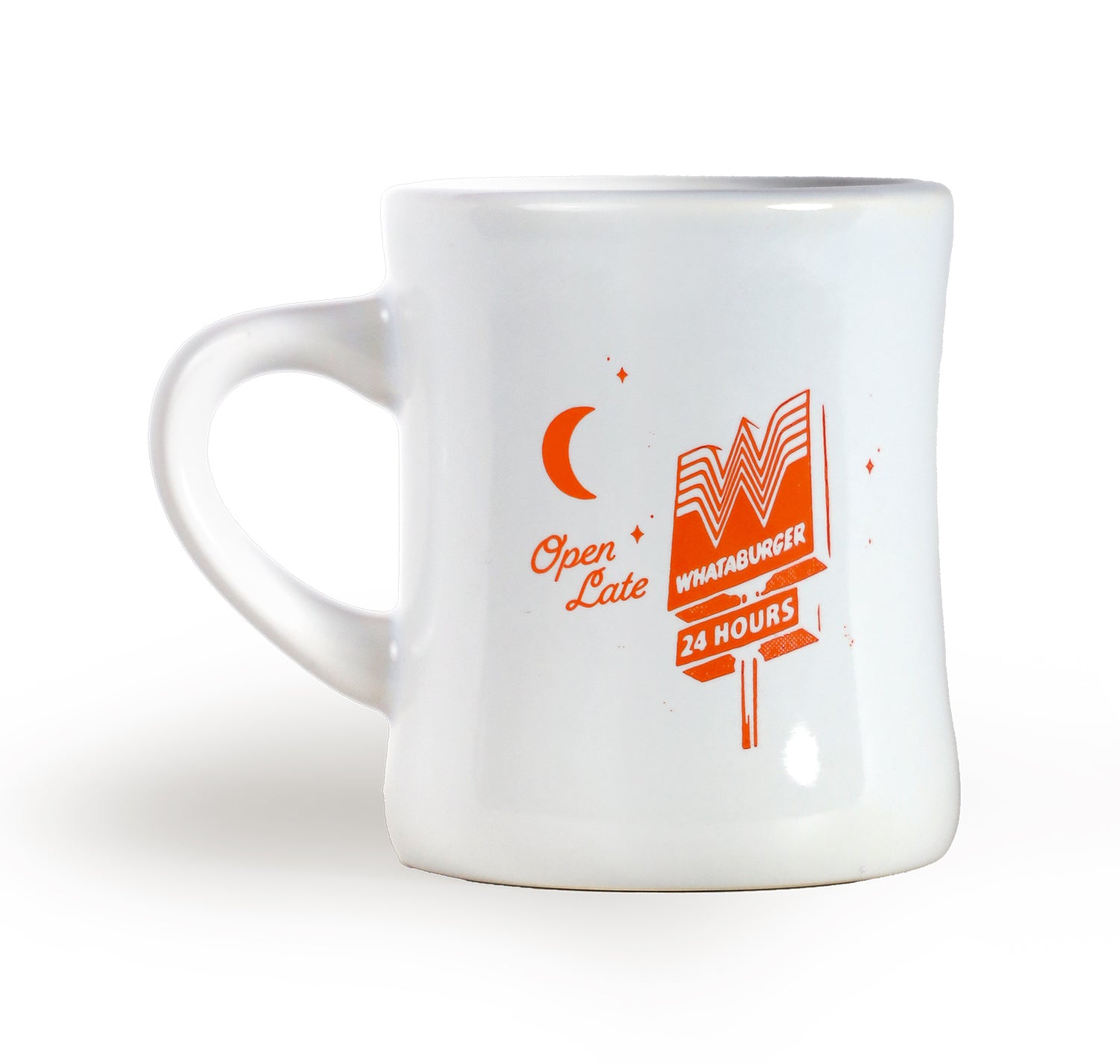 The Whataburger Open Late Mug is the next addition to your coffee mug collection! Thisclassic, white, diner-style mug features a fun “open late” design on the front, with a friendly reminder to refill promptly when empty on the back, a nod to the iconic Whataburger cup. Perfect for any coffee (or tea) lover!