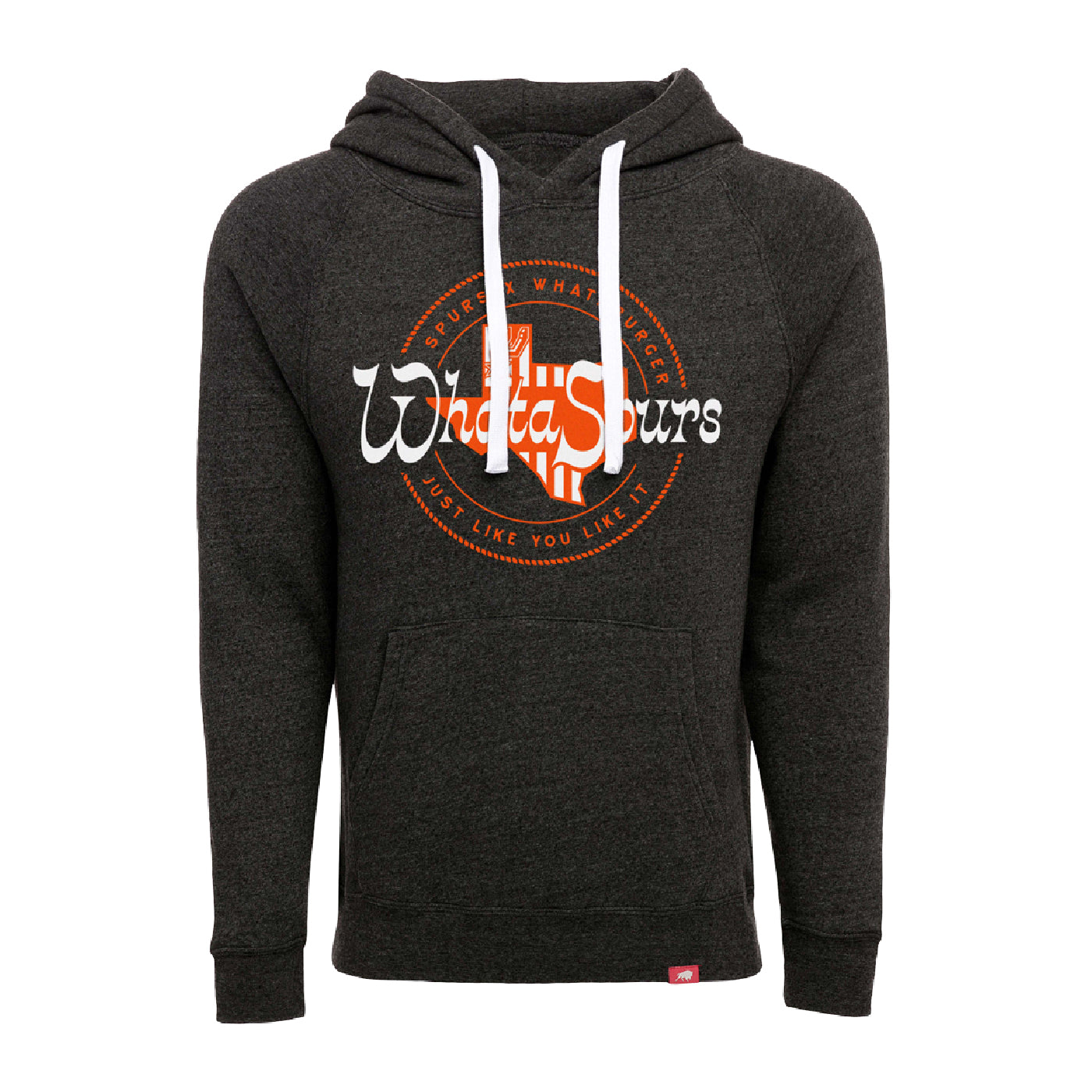 Get ready to score big with the best-selling WhataSpurs Sportiqe Hoodie in charcoal. This unique hoodie is a slam dunk collaboration between Whataburger and the San Antonio Spurs!