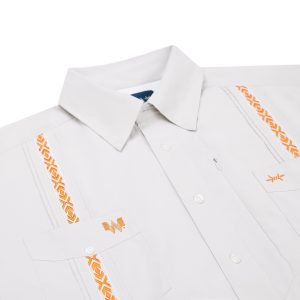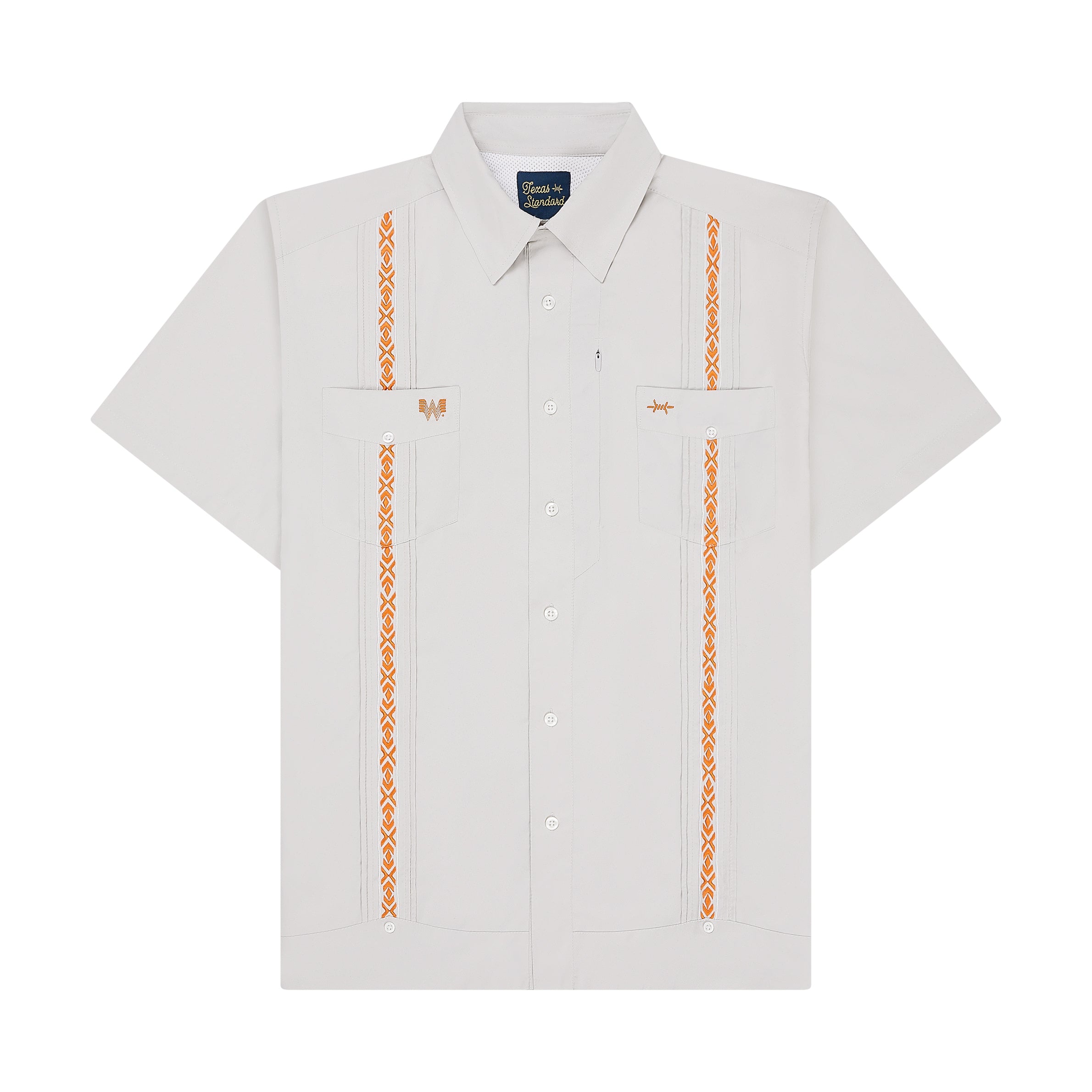 The Texas Standard Whataburger Grey Libre Guayabera features the classic elements of a hidden button-down collar, double-breasted pockets, and custom Whataburger embroidery; and introduces functional features including a hidden zipper pocket on the chest and mesh-lined venting on the back. The breathable, moisture-wicking fabric offers UPF 40 sun protection to keep you feeling cool and looking even better whether you’re dining in for a #1 or grabbing Whataburger while on the go!