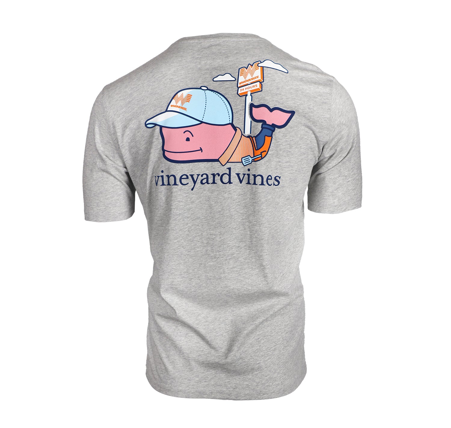 Get ready to fire up the grill with this Vineyard Vines x Whataburger WhataCook grey tee! Featuring playful puns and iconic branding from both Vineyard Vines and Whataburger, this t-shirt is a must-have for any burger-loving, fun-loving individual. Don’t miss out on this unique collaboration!