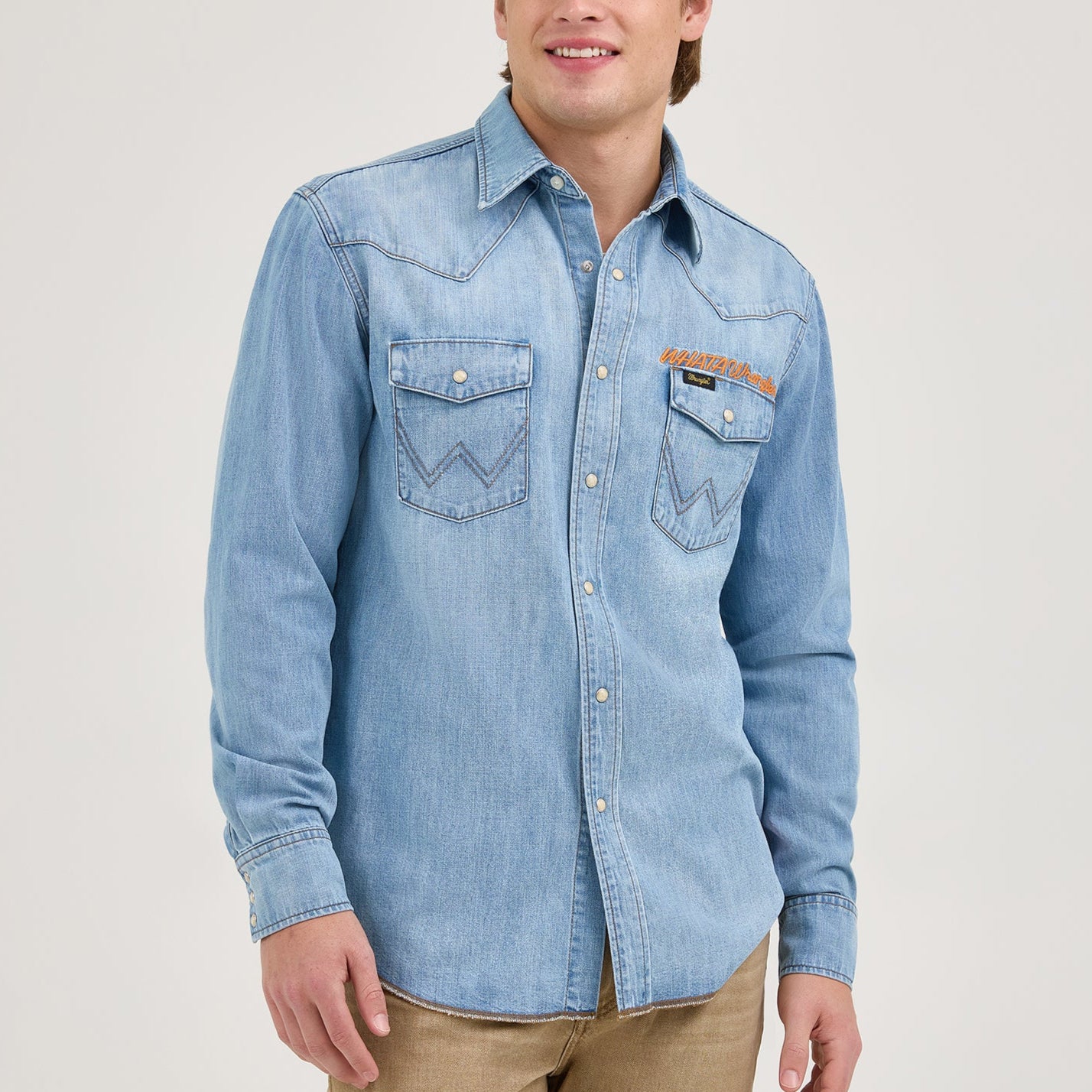Long Live Cowboys…and Burgers! The Wrangler® x Whataburger® Western Shirt combines all the details of a classic with the limited-edition branding of your favorite Texas burger joint. It comes with an easy fit that’s not too tight or too loose, complete with a curved hem that looks great tucked or left untucked. This long-sleeve shirt is crafted from cotton in a sun-washed blue that looks well-worn right from the start. It comes with all the Western styling, just like you like it, an embroidered collaboration logo, and a woven label on the lower left side.